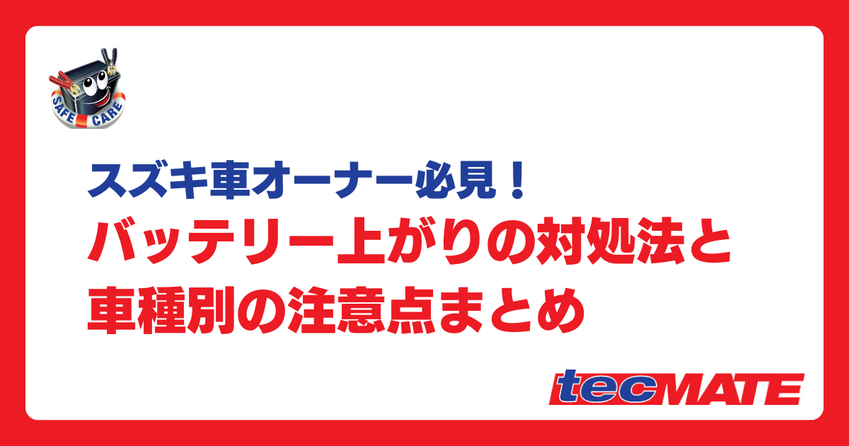 この記事では、スズキ車のバッテリー上がりの原因から、主要車種別の具体的な注意点を徹底解説します。バッテリー上がりを未然に防ぐ方法についてもお伝えしますので、ぜひ参考にしてください。